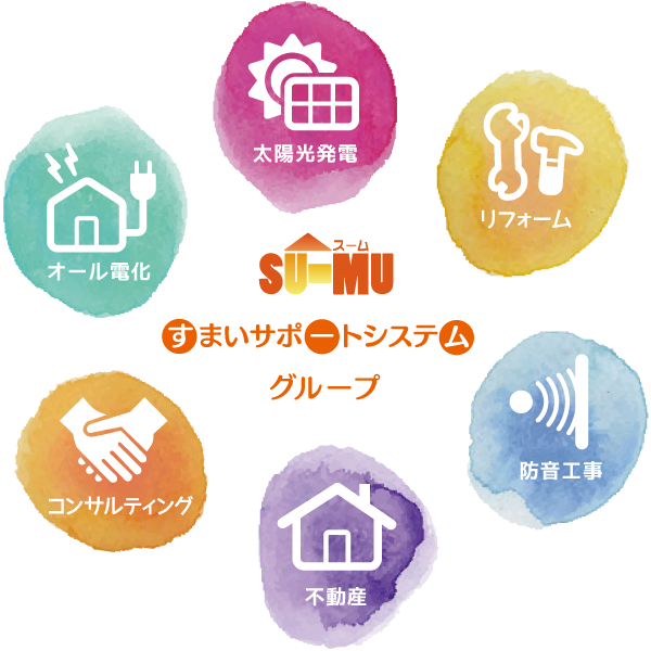 私ども株式会社スームは、各家庭における次世代エネルギーによる電力の安定供給を実現できる太陽光発電システムの販売を通してお客様のニーズへの柔軟な対応やご提案をして参りました結果「住まい」に関連する事業へと発展していくことができ、今にいたります。